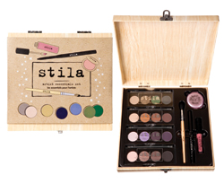 “While sets and kits have historically been associated with a value or commodity purchase, that is not the reality driving the trends today,” says Karen Grant, vice president and global beauty industry analyst, The NPD Group, Inc.—and a member of Beauty Packaging’s Board of Advisors. “Depending upon the category, it is either fashion or luxury that is driving the growth in prestige sets again this year,” Grant explains, continuing “…makeup sets are appealing to consumers with fashion statements offering multi-category ‘look-in-a-bag’ ensembles, as well as palettes offering everything for the perfect soft or smoky eye look.” Stila is known for creating different types of makeup sets designed to help consumers create a specific look, and launches these types of palettes all year long. But during the holiday season, the trendy cosmetics company always offers its fans something “extra.” One of Stila’s “star” gifts for Holiday 2013 is The Stila Holiday Artist Essentials Set. The set contains four different color palettes, for a total of 16 eye shadows. Each palette represents a different genre of art—surreal, pop, abstract and renaissance. The set also contains an all-over blending brush with a wooden handle; a Smudge Stick waterproof eye liner; Convertible Color dual lip and cheek color; and Stay All Day liquid lipstick. Jill Tomandl, chief creative officer for Stila Cosmetics, feels that it’s still important for a set to provide value. “Consumers have so many choices at Holiday, so value matters,” she says. Like the “look-in-a-bag” Grant refers to, Stila’s set includes many different “looks-in-a-box.” A booklet provides makeup tutorials, and application tips from Stila’s pro makeup artist, Sarah Lucero. “The products inside the box are inspired by mixed media. The eye colors all deliver different textures, which work together to create complete looks,” Tomandl explains. “The palettes are meant to be used together, but since each palette also creates a complete eye shadow look, they can be separated and given as gifts.” The packaging was inspired by art as well—specifically, an artist’s paint box. The keepsake set up box is wrapped with paper that is printed in a wood grain pattern. It has a metal closure and metal hinges, which give the box an upscale feel. Even the sleeve that wraps around the box looks special. “It’s made with Stila’s signature Kraft, and hot stamped with shiny silver stars,” says Tomandl.