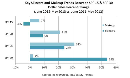 Sales of makeup and skincare with a SPF reached 1.1 billion US dollars in US prestige department stores from June 2012 to May 2013, reports The NPD Group. The market research firm notes it corresponds to a 24 percent increase from three years ago.